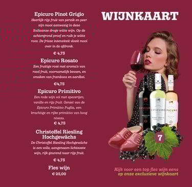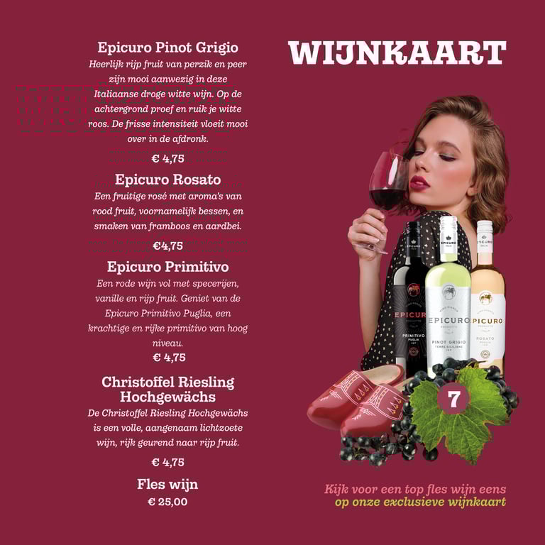 Wij hebben verschillende goede wijnen die je per glas kan bestellen, echter onze wijnen van de exclusieve kaart kunnen alleen per fles besteld worden.