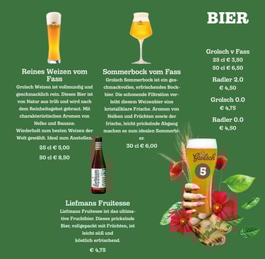 Unser Team nimmt Allergien sehr ernst. Bitte informieren Sie uns daher, falls Sie Allergien haben. Auf unserer Allergenseite finden Sie eine Übersicht der in unseren Gerichten enthaltenen Allergene. Bei Fragen oder falls Sie Unterstützung bei anderen Ernährungsbedürfnissen benötigen, helfen wir Ihnen gerne weiter.